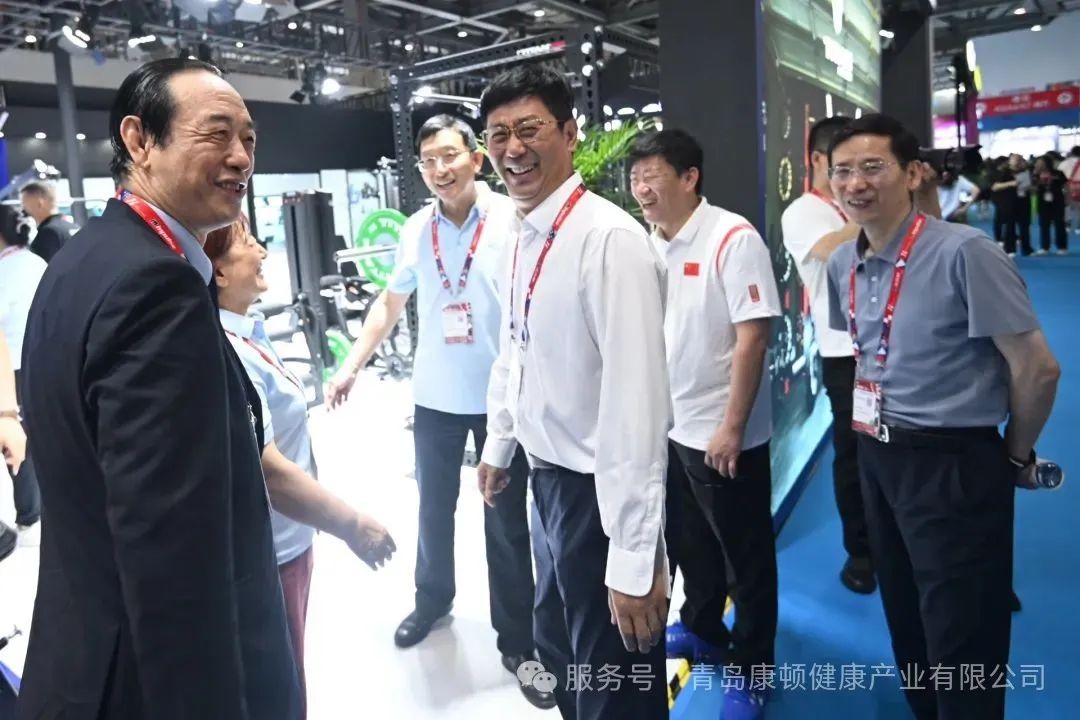 开幕当日,康顿展位客商云集,国家及省市体育系统领导莅临展位,体验产品,洽谈合作。